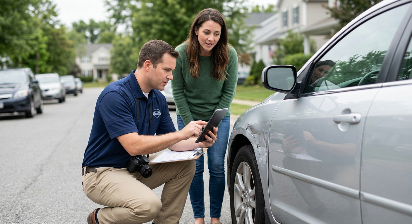 You filed a claim for your damaged car. An insurance company claims adjuster must now inspect it, assess the damage, and decide the payment amount.